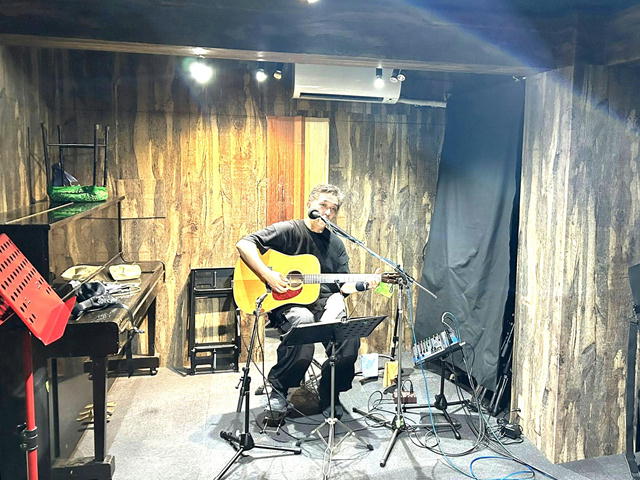 区のやつライブ(区民館)とはだいぶ違うけど、今回は独りでなく、スタジオのオーナー コニタさんが助けてくれてのセッティング。